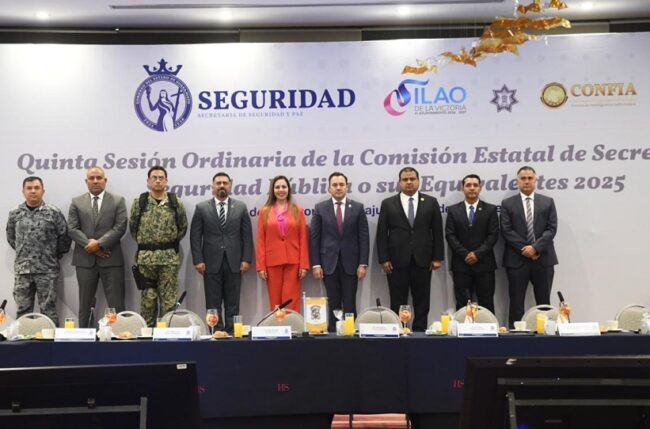 The Secretary of Security and Peace, Juan Mauro Gonzalez Martinez, led the Fifth Session of the State Commission of Secretaries of Public Security or their equivalents, in which he reiterated the need to work in coordination to maintain the decrease in homicides and high-impact crimes.