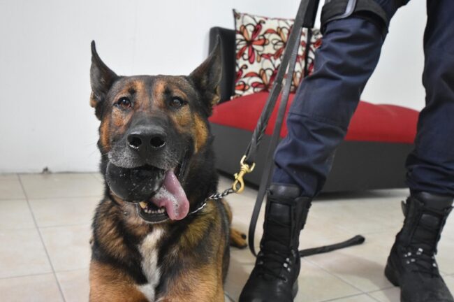“A single pair can do the work of three or four police officers with their highly developed sense of smell,” explains Inspector Luis Rico Zavala, head of the unit. “We’ve had very good results, especially at delivery stores and temporary pretrial detention centers.”