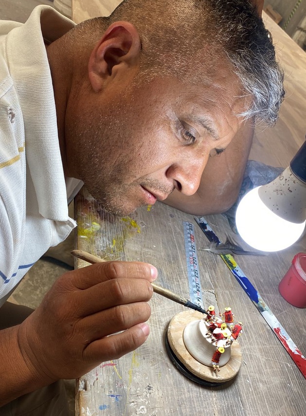 Abel Avalos Guerrero, of Dolores Hidalgo, Cradle of National Independence, for his work “Jineteando,” a clay charro hat made using the high-temperature droplet technique, adorned with mariachi figures, folkloric ballet dancers, and a horseman