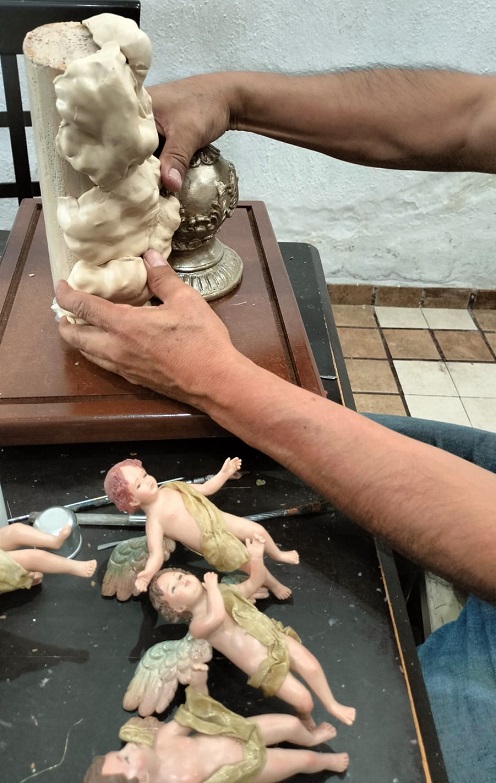 Juan Carlos Salgado Crespo of Salamanca, with the piece “Virgin Immaculate Conception”, a molded and modeled beeswax sculpture, dyed with natural pigments such as earth and oils, and dressed in fabrics waxed with natural wax