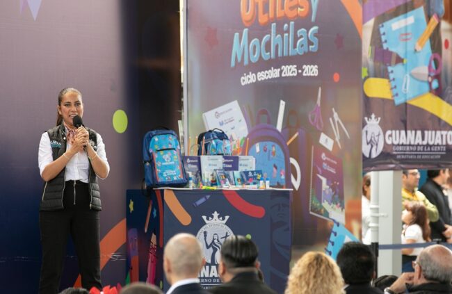 “In Guanajuato, we want our children to be in the classroom, to continue studying. Today, I want to invite you, parents, to join forces for the education of our children,” said the Governor of the People, Libia Dennise Garcia Munoz Ledo, as she handed out backpacks and school supplies to students for the 2025-2026 school year.