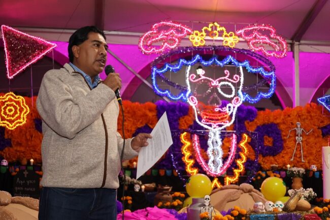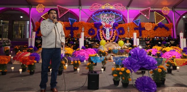 The 15-meter mega altar is not dedicated to a single person but rather to the multicultural identity of Purisima del Rincon that has marked its origins and history through time. It highlights evolution, the countryside, pottery, livestock, stone, the molcajete (mortar and pestle), the arrival of the telephone, the bakery tradition, color, power lines, and the path to go forward, according to Purisima del Rincon Mayor, Roberto Garcia Urbano. The mayor extended an invitation to celebrate the Day of the Dead tradition throughout the entire weekend.