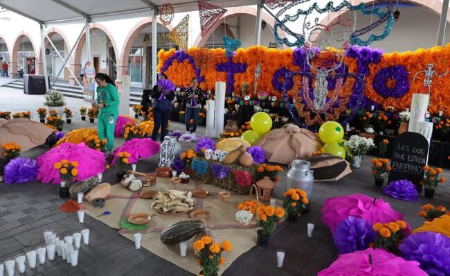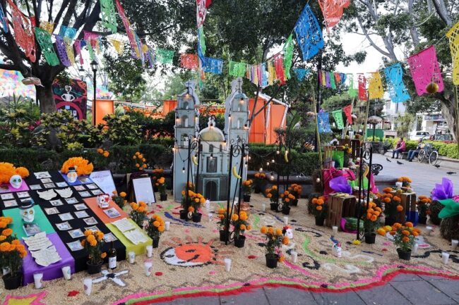 Offerings, evolution, life, work, traditions, multiculturalism, flowers, alfenique candies, colorful sawdust carpets, and characters that made history, all eternal elements that give Purisima del Rincon its name, are part of the Day of the Dead altars currently adorning the Main Square.
